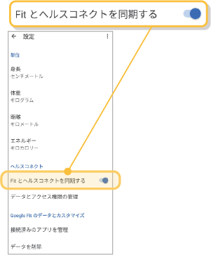 ❸「Fitとヘルスコネクトを同期する」を有効にする