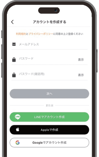 ※ LINEやApple IDでの作成が簡単でおすすめです