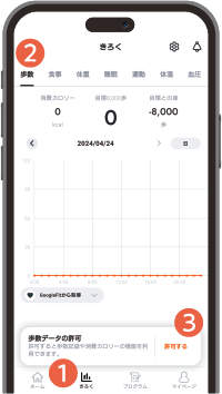 ❸歩数データの許可の「許可する」をタップ